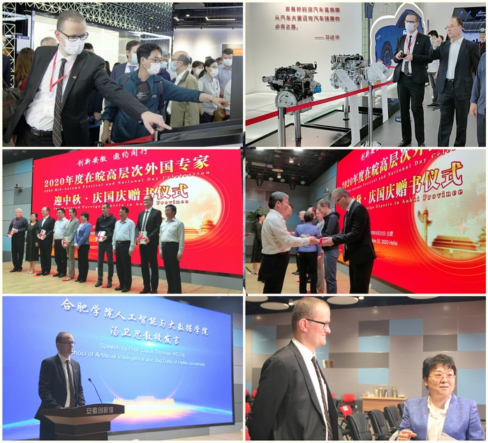 Initiiert von der Publikationsabteilung des Provinzkomitees der Provinz Anhui und der Abteilung für Wissenschaft und Technologie der Provinz Anhui, veranstaltet vom Büro für Wissenschaft und Technologie von Hefei und vom Anhui-Innovationsmuseum, fand die Veranstaltung für hochrangige ausländische Experten in Anhui im Jahr 2020 zum Mondfest und Nationalfeiertag am Nachmittag des 22. September in der Anhui-Innovationsmuseum statt. Herr Prof. Dr. Thomas Weise, Professor des Instituts für Künstliche Intelligenz und Big Data der Universität Hefei und Direktor des Instituts für Angewandte Optimierung, wurde eingeladen und besuchte das Anhui-Innovationsmuseum, um mehr über den Charme technologischer Innovationen und die Entwicklung aufstrebender Industrien in der Provinz Anhui zu erfahren.