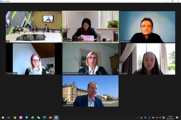 Frau Prof. Dr. Wu Chunmei beglückwünschte zunächst die drei Parteien zur erfolgreichen Durchführung der Online-Videokonferenz. Sie wies darauf hin, dass das Chinesisch-Deutsche Dialogforum eine Kommunikationsplattform sei, die von der chinesischen und der deutschen Regierung gemeinsam aufgebaut wurde, und dass die heutige Videokonferenz dazu diene, den Konsens des Chinesisch-Deutschen Dialogforums umzusetzen, bei dem die drei Parteien beabsichtigen, gemeinsam die Chinese-German OOC (C-G-OOC) aufzubauen, um die gemeinsame Verleihung chinesischer und deutscher Abschlüsse, die Ausbildung von Hochschullehrkräften und die Integration von Online- und Offline-Ausbildung im dualen System zu realisieren.