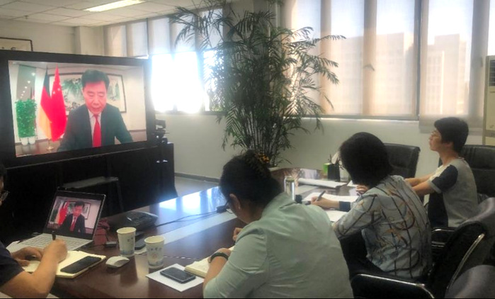 本次线上招待会由驻德大使吴垦主持,下萨克森州长Stephan Well,汉堡市议长Carola Veit,不来梅市议长 Frank Imhoff,以及石荷洲副议长Kirsten Eickhoff-Weber出席并发表讲话。