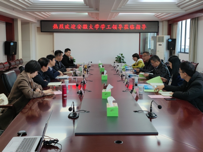 12月21日上午,安徽大学党委学工部部长秦楠、副部长邢冰率队来我校调研学生工作制度建设与辅导员队伍建设,校党委委员、党委学工部部长朱涛,党委学工部副部长许刚、张应杰等在行政楼第八会议室接待秦楠一行。