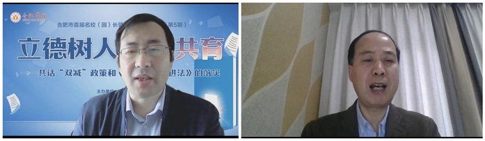 下午,合肥七中党委书记、校长邓宗国,合肥市第四十五中学教育集团党委书记、校长姚剑,合肥市六安路小学教育集团党总支副书记、校长朱清萍分别以“疫情防控背景下学生的安全问题与策略”、“双减背景下如何有效开展家校共育”、“落实‘双减’政策回归教育本真”为主题进行了交流发言。
