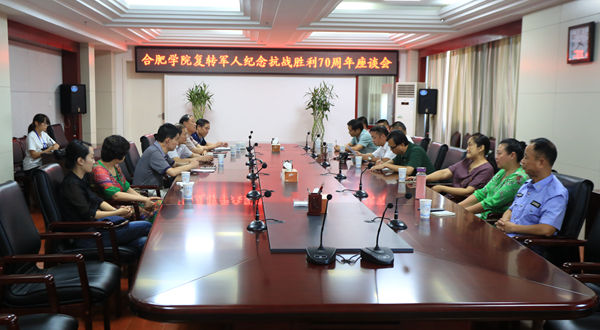 9月7日,由武装部组织的合肥学院复转军人纪念抗战胜利70周年座谈会于行政楼九楼东会议室举行。校党委副书记丁明出席,统战部、保卫处等相关部门人员以及教职工复转军人参加座谈。会议由保卫处处长肖保生主持。