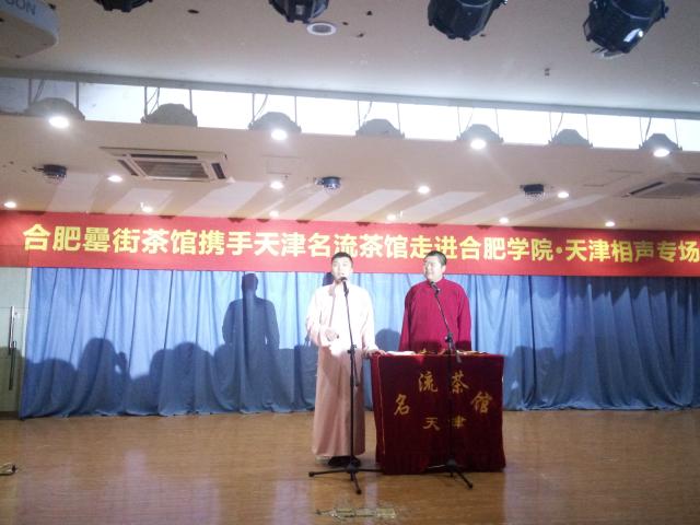 55日晚,合肥罍街茶馆携手天津名流茶馆走进合肥学院传统文化公益巡演活动在大学生活动中心活动举行,为我校400多名师生献上了集视听于一体的文化大餐。