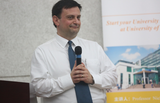 据悉,代表团一行人还在相关系部负责人陪同下于学术报告厅B厅召开报告会。在报告会中,尼克介绍了德比大学目前的师资状况及特色专业课程。他着重强调,德比大学与合肥学院一样,高度重视学生的实践能力,与当地众多国际知名企业紧密合作,丰富学生的工作经验,让学生取得理论与实践的双赢,并取得了一系列的科研成果。此外,尼克强调,近年德比大学凭借高就业率、高教学质量、低经济消费迅速发展壮大。同时,它具有现代化的设施和丰富多彩的文化生活,人文情怀浓厚,这些都使得德比大学成为学习与生活的圣地。刘路教授通过播放相关视频,让在座学生有了更直观的感受和了解。