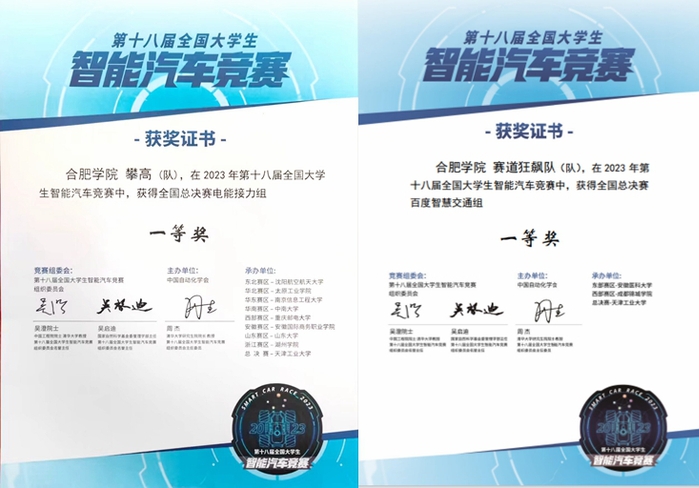 合肥学院智能车团队于2007年10月成立,2008年首次参赛,在校领导、各部门的大力支持下,在先进制造工程学院党政领导的指导下,形成了“坚持拼搏、团结奉献”的良好氛围,自参赛以来,400余名学生获省级以上奖励,团队获省级以上奖项174项,其中国家一等奖7项、二等奖20项、三等奖3项、省级一等奖55项。以赛促教,参加该项赛事提升了我校学生的动手能力和创新能力,充分体现了学校应用型办学理念在学生工程实践能力、创新意识、综合素质等方面的培养成果。