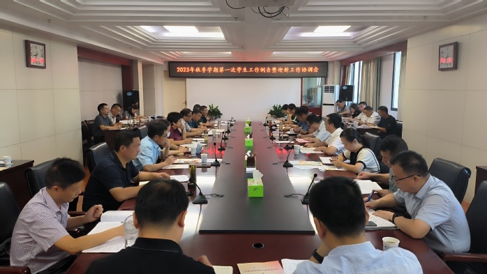 为统筹做好秋季学期期初学生工作,顺利迎接2023级新生入学报到,9月1日上午,学校在行政楼九楼东会议室召开了2023年秋季学期第一次学生工作例会暨迎新工作协调会。党委副书记刘建中出席,相关职能部门负责人、各二级学院党委书记、各物业负责人参会,会议由学生处处长丁增云主持。