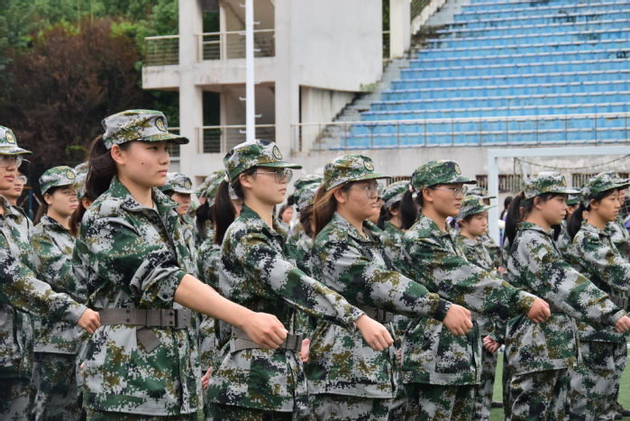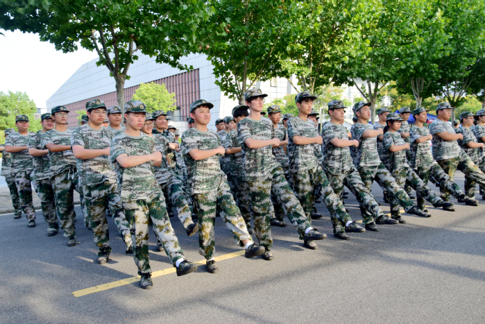 操场上,一群身着迷彩服的身影迈着铿锵有力的步伐,稍息、立正、敬礼,一连串的动作一气呵成,原本松散的队形逐渐井然有序。当炙热的风吹过脸庞,新生们目光坚毅,身姿挺拔,逐渐褪去了青涩与稚嫩。