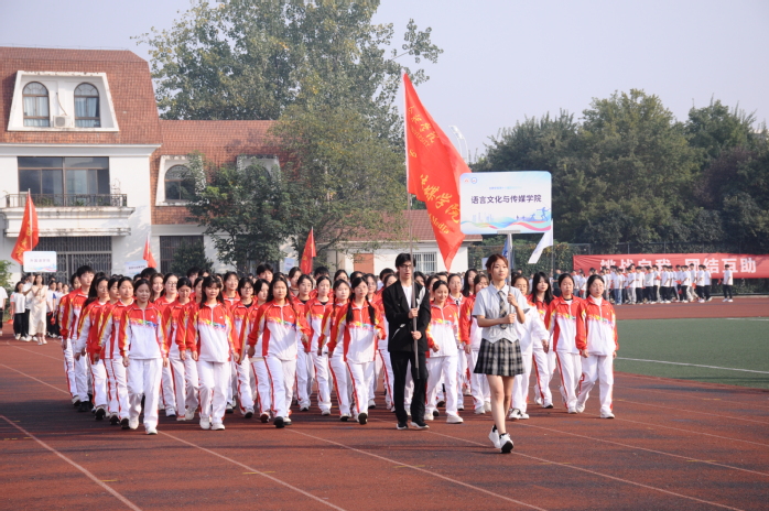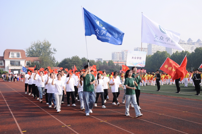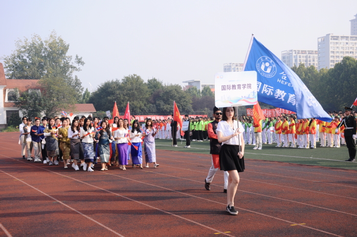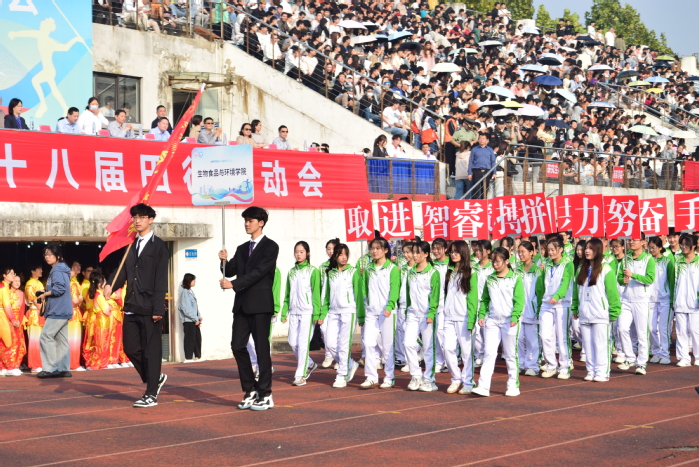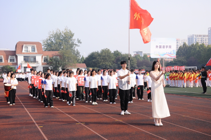 校国旗队方阵托举国旗率先入场,伴随着雄浑壮阔的《运动员进行曲》,各二级学院、留学生、研究生代表队紧随其后,迈着铿锵有力的步伐依次走过主席台前方。戴着红色建筑安全帽的城市建设与交通学院方阵队昂首阔步向前,能源材料与化工学院方阵携化学元素周期表尽显专业风采。“先进制造、制造先进,勇往直前、永不言败”“信笃志坚、奋勇争先,外院学子、拼搏向前”……响亮豪迈的口号声此起彼伏。整齐的步伐、挥舞的旗帜,展现着全校运动健儿们团结向上、奋力拼搏的精神风貌。