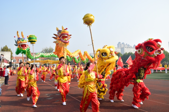各体艺俱乐部为全场师生带来了精彩纷呈的文艺表演,观众席喝彩连连。首先登场的是舞龙舞狮和武术,运动员手舞长龙、穿梭前进,群狮翻腾、千姿百态、妙趣横生,校领导亲自为舞龙舞狮点睛。伸臂、踢腿、旋转、跳跃,灵活的舞姿与有力的鼓点在操场上交织,舞蹈、瑜伽、啦啦操等表演诠释着青春之美、律动之美、活力之美,充分展现了学校体育教学成效和学生的专业能力水平。