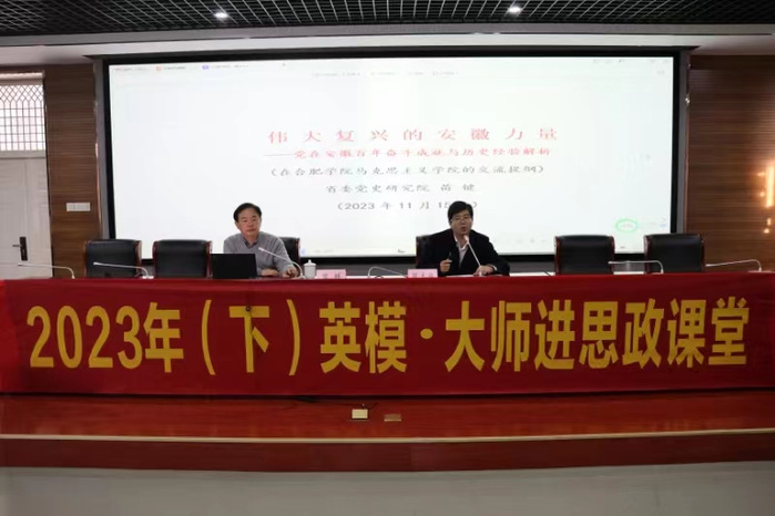 苗键以“伟大复兴的安徽力量——党在安徽百年奋斗重大成就与历史经验的解析”为题,讲解了新民主主义革命时期、社会主义革命和建设时期、改革开放和社会主义现代化建设新时期、中国特色社会主义新时代四个阶段中国共产党在安徽发展的最基本脉络和最根本特征,阐明了党领导安徽人民百余年奋斗历史成就和历史经验,强调我们要更加紧密地团结在以习近平同志为核心的党中央周围,全面贯彻习近平新时代中国特色社会主义思想,深刻领悟“两个确立”的决定性意义,大力弘扬伟大建党精神,勿忘昨天的苦难辉煌,无愧今天的使命担当,不负明天的伟大梦想,以史为鉴、开创未来,埋头苦干、勇毅前行,为实现第二个百年奋斗目标、实现中华民族伟大复兴的中国梦而不懈奋斗。