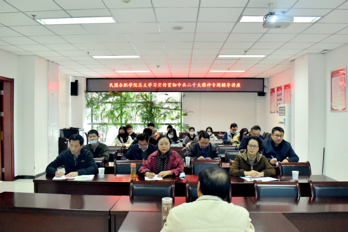 11月24日上午,民盟合肥学院总支在行政楼一楼会议室举办学习宣传贯彻中共二十大精神专题辅导讲座,学报编辑部李德才教授作题为《总体把握,抓住要点,深入学习贯彻中共二十大精神》的专题辅导,民盟合肥学院总支全体成员到场聆听讲座。